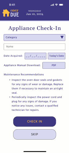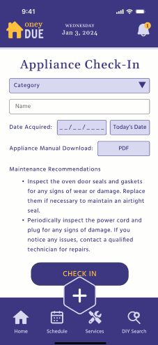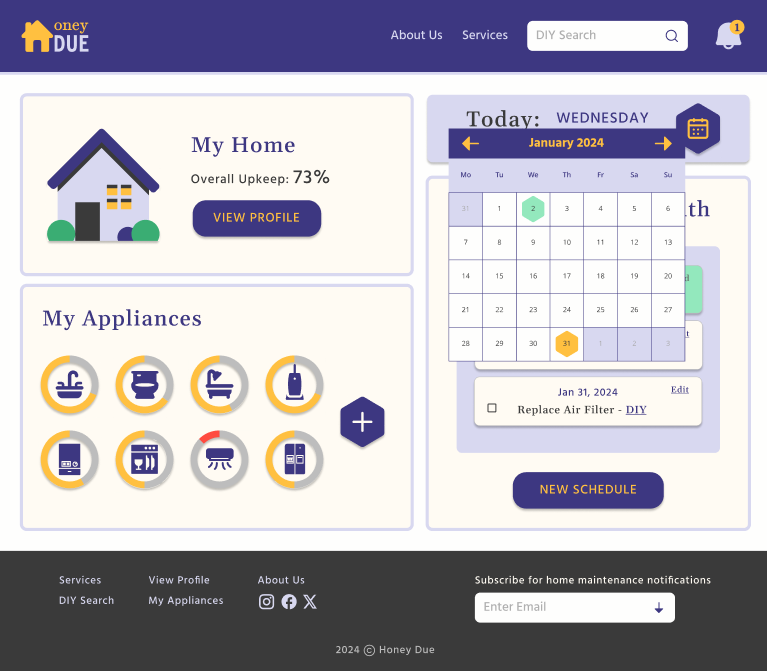“To create a home maintenance scheduler that will help users keep track of all the appliances they have. Keeping them up to date on maintenance and giving options on how to tackle the upkeep.”