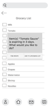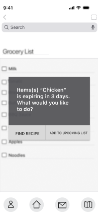 “To create a application that will help the everyday user save money on groceries by keeping track of expiring food, use leftover ingredients in dishes and having up-to-date grocery list.”