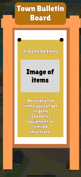 Showing how each ad will intergraded into the gameplay but also be optional to allow the user to make the choice to interact to be rewarded.